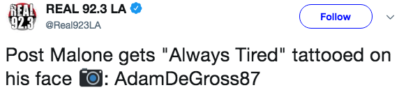 Post Malone Gets Passionately Trolled For Absurd New Face Tattoo