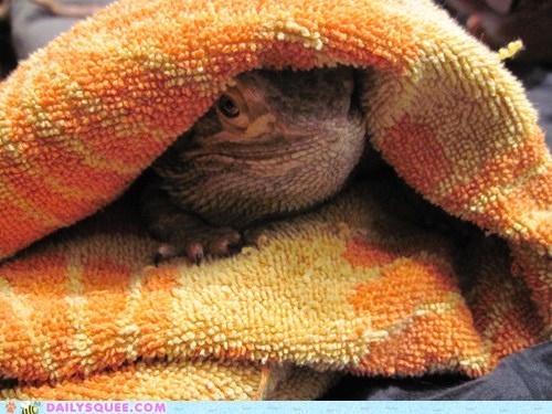 WhiteRoseMaiden says: "Pablo the Beardie drying off after a nice warm bath."