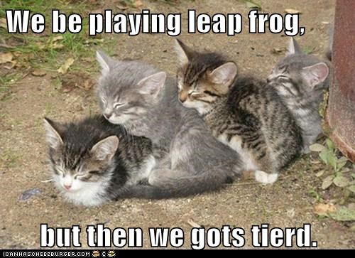 We be playing leap frog, but then we gots tierd.