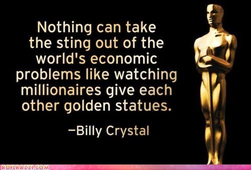 Nothing can take the sting out of the world's economic problems like watching millionaires give each other golden statues. -Bill Crystal