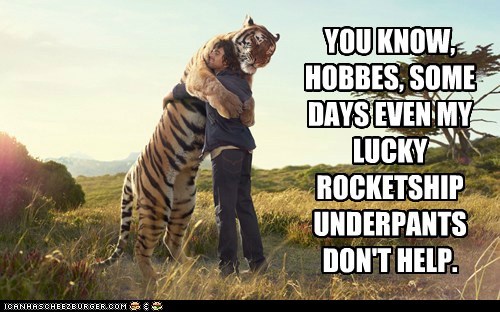 YOU KNOW, HOBBES, SOME DAYS EVEN MY LUCKY ROCKETSHIP UNDERPANTS DON'T HELP.