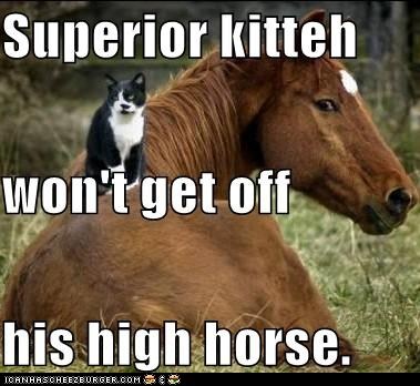 Superior kitteh won't get off his high horse.