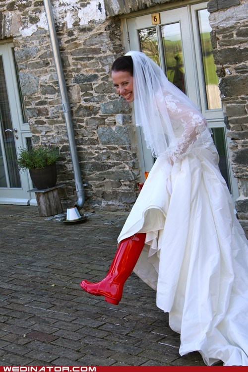Please tell me it wasn't too sunny for puddles. White dress, brand-new shiny boots? Bring on the mud!