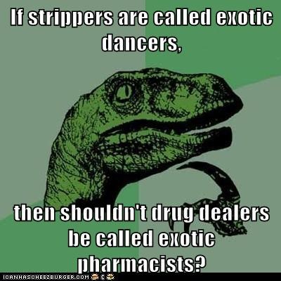 If strippers are called exotic dancers, then shouldn't drug dealers be called exotic pharmacists?