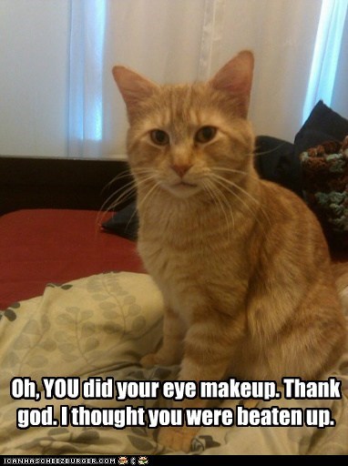 Oh, YOU did your eye makeup. Thank god. I thought you were beaten up.