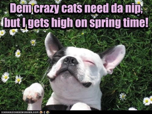 Dem crazy cats need da nip, but I gets high on spring time!