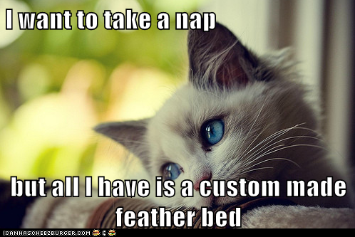 I want to take a nap but all I have is a custom made feather bed