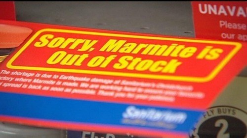 First World Problem of the Day: A widespread shortage of popular toast spread Marmite has sent New Zealanders scurrying to find the last remaining containers in a bout of frenzy nicknamed by the press "Marmageddon."