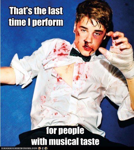 That's the last time I perform for people with musical taste. -Justin Bieber
