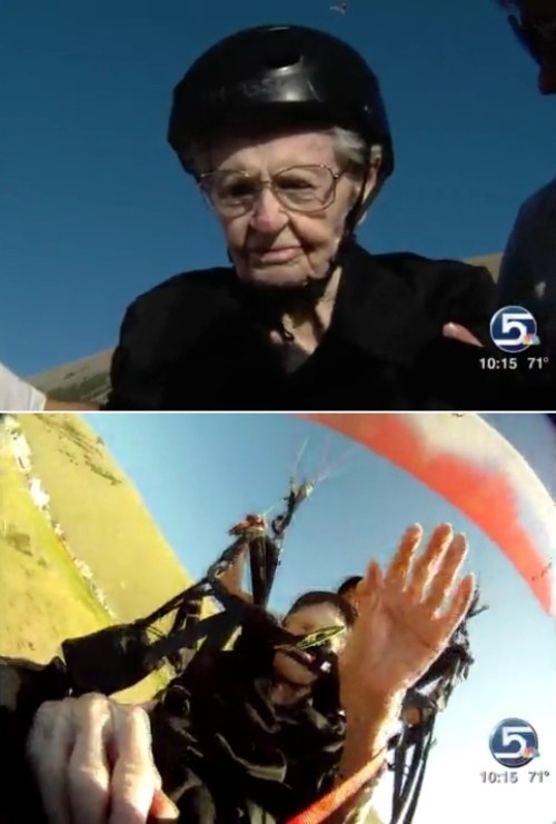 You're Only As Old As You Paraglide of the Day: Mary Hardison, a 101-year-old great-great grandmother from Ogden, has set a new world record for Oldest Female to Paraglide Tandem.