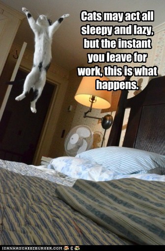 Cats may act all sleepy and lazy, but the instant you leave for work, this is what happens.