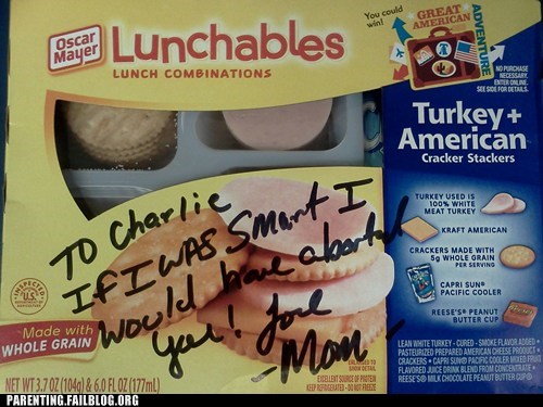 "No, Mom, if you were smart, you would give me a processed lunch that's not full of harmful sodium nitrate. Your move."
