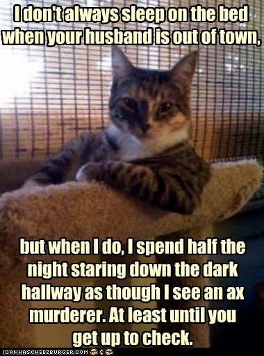but when I do, I spend half the night staring down the dark hallway as though I see an ax murderer. At least until you get up to check.