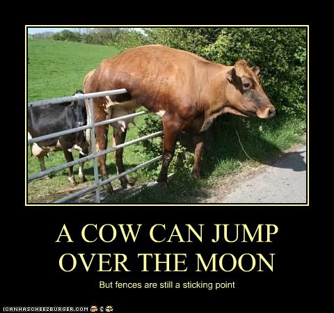 A COW CAN JUMP OVER THE MOON But fences are still a sticking point