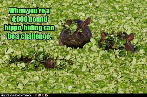 When you're a 4,000 pound hippo, hiding can be a challenge.
