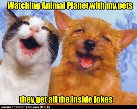 Watching Animal Planet with my pets: they get all the inside jokes.