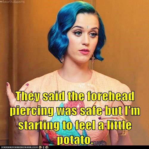 They said the forehead piercing was safe but I'm starting to feel a little potato. -Katy Perry
