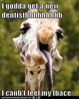I godda get a new dentisthhhhhhhhh I canb't feel my fbace