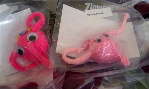 More than a dozen Arizona state legislators are the lucky recipients of knitted uteruses, complete with creepy endearing googly eyes. They arrived Thursday in plastic bags, accompanied by personalized letters from women opposing a state measure that would limit birth control coverage. The legislation goes to a vote next week.