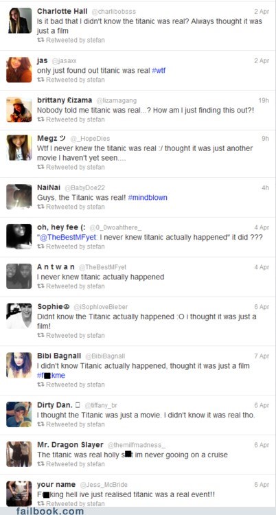Failbook: A Dozen People Who Had No Idea Titanic Was a Real Ship