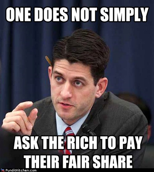 One does not simply ask the rich to pay their fair share. -Paul Ryan