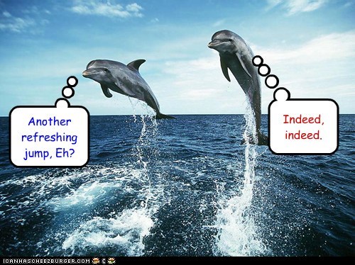 "Another refreshing jump, eh?" "Indeed, indeed."