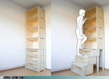 This is genius! I wish all my tall bookcases turned into their own stepstool! GENIUS!!!