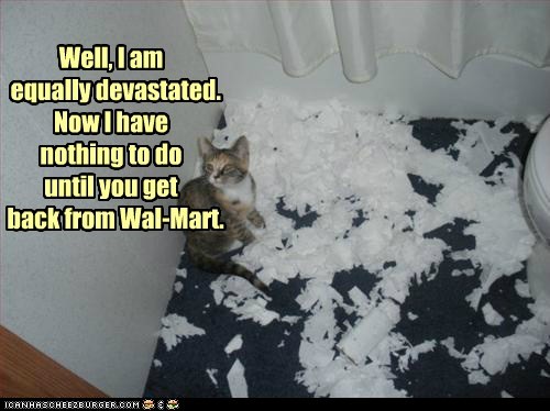 Well, I am equally devastated. Now I have nothing to do until you get back from Wal-Mart.