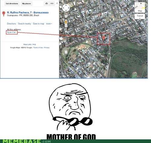 No joke, this works in Google maps. Nyan Cat has retired to Brazil.