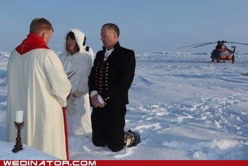 Børge Ousland, Norwegian explorer and first person to do a solo crossing of Anarctica, is now also the North Pole's first groom! He and wife Helge were married there along with a Lutheran minister and about 30 guests last Friday.