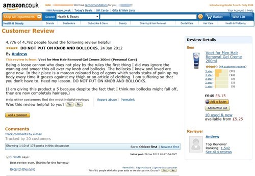 Monday Thru Friday: Ridiculous Reviews: Veet Hair Removal Gel