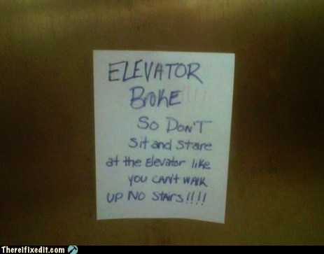 Yep, pressing the button 30 more times and kicking the door didn't work, so I guess you're right, sassy sign. You win this round!