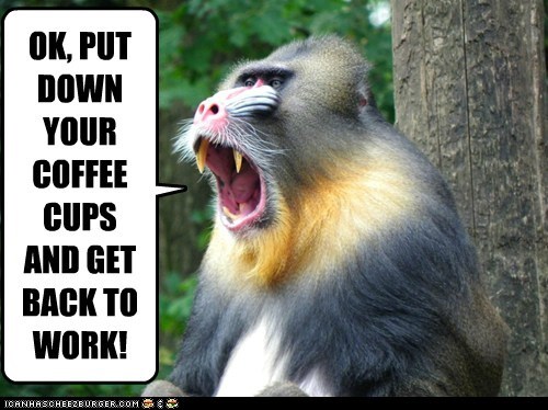 OK, PUT DOWN YOUR COFFEE CUPS AND GET BACK TO WORK!