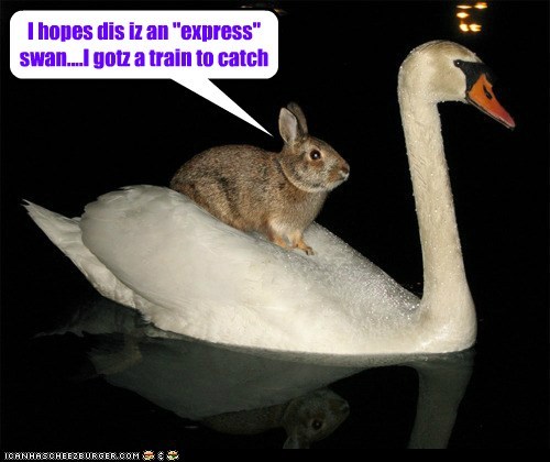 I hopes dis iz an "express" swan... I gotz a train to catch.