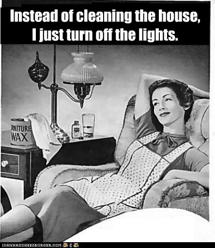 Instead of cleaning the house, I just turn off the lights.