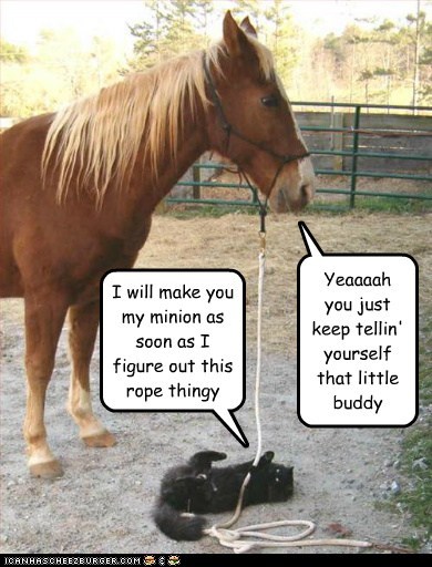 "I will make you my minion as soon as I figure out this thingy." "Yeaaaaah you just keep telling yourself that, little buddy."