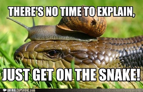 THERE'S NO TIME TO EXPLAIN, JUST GET ON THE SNAKE!