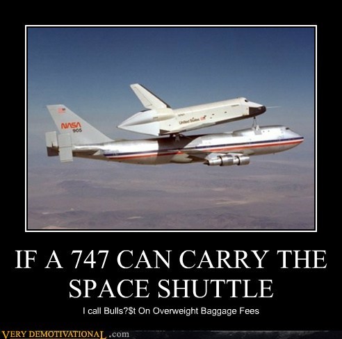 IF A 747 CAN CARRY THE SPACE SHUTTLE I call bullsh*t on overweight baggage fees