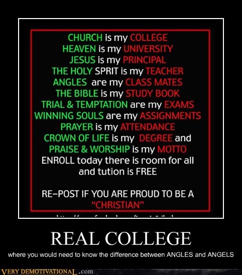 REAL COLLEGE where you would need to know the difference between angels and angles.