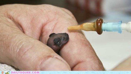 This dude is so little he has to be fed with a tiny dropper. Squeeeee!