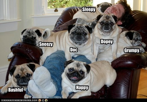 Sleepy. Sneezy. Doc. Dopey. Grumpy. Bashful. Happy.