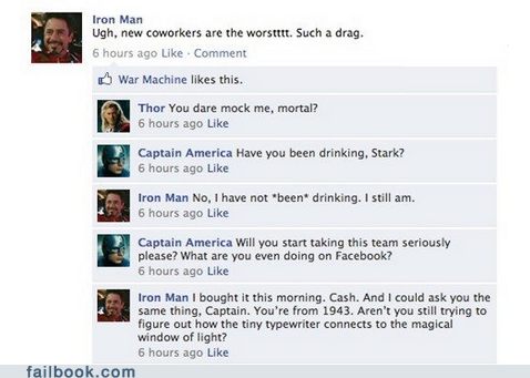 It's even MORE affectionate needling from the Facebook pages of The Avengers!