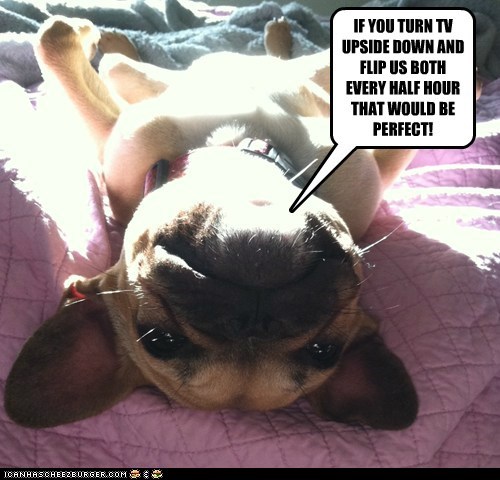 IF YOU TURN TV UPSIDE DOWN AND FLIP US BOTH EVERY HALF HOUR THAT WOULD BE PERFECT!