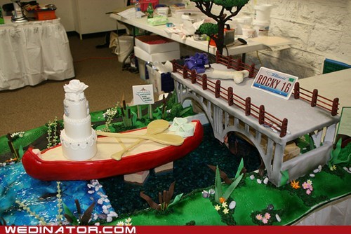 The canoe's all right, but I'm not sure if the cake's gonna make it under that bridge!
