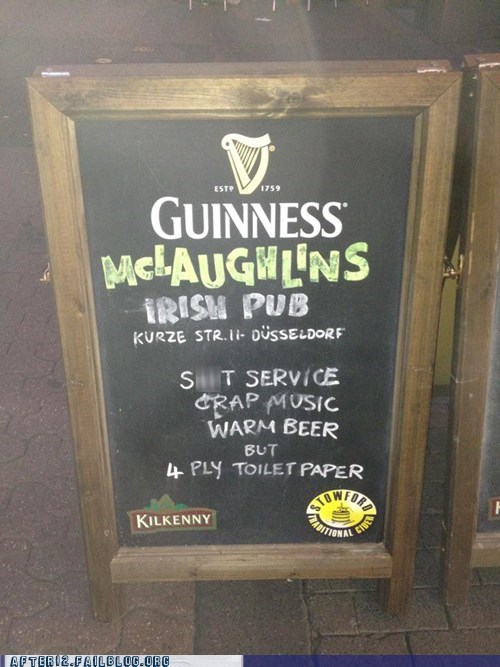 "They have warm service, s**t music and 4-ply beer." "Wait, what?"