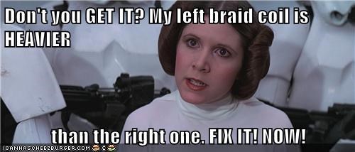 Don't you GET IT? My left braid coil is HEAVIER than the right one. FIX IT! NOW!