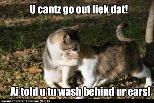 U cantz go out liek dat! Ai told u tu wash behind ur ears!