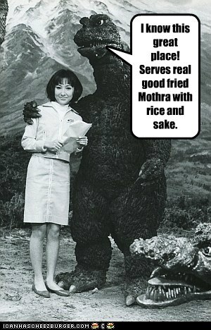 I know this great place! Serves real good fried Mothra with rice and sake.