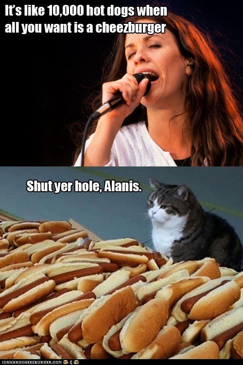 It's like 10,000 hotdogs when all you want is a Cheezburger Shut yer hole, Alanis.