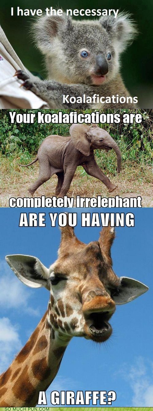 But seriously, what the hell pun were you trying to make with the word giraffe, OP? - Matty Malaprop
